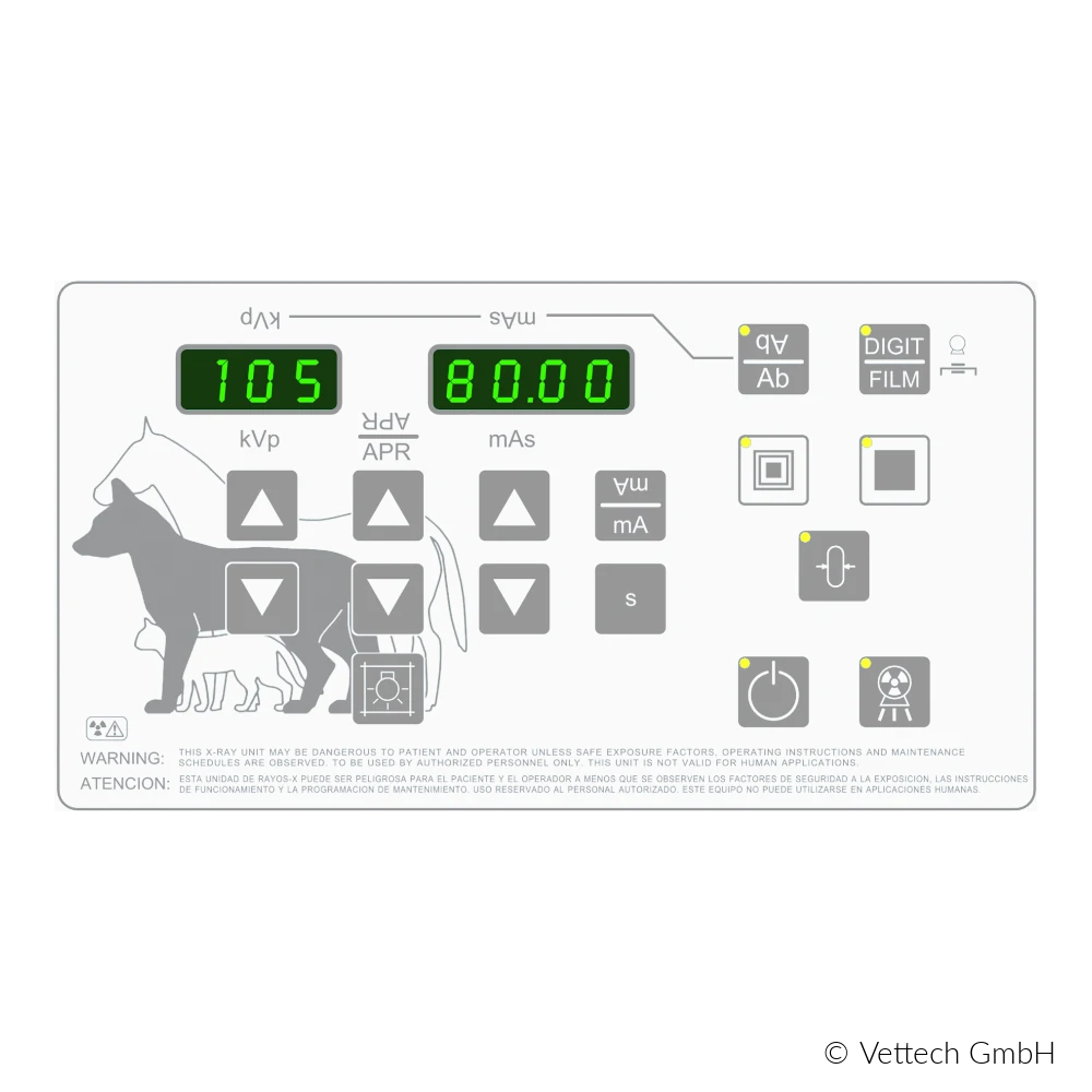 Einfache Bedienung über das Display mit einfacher Auswahlt der Aufnahmeparameter (kV /mAs).